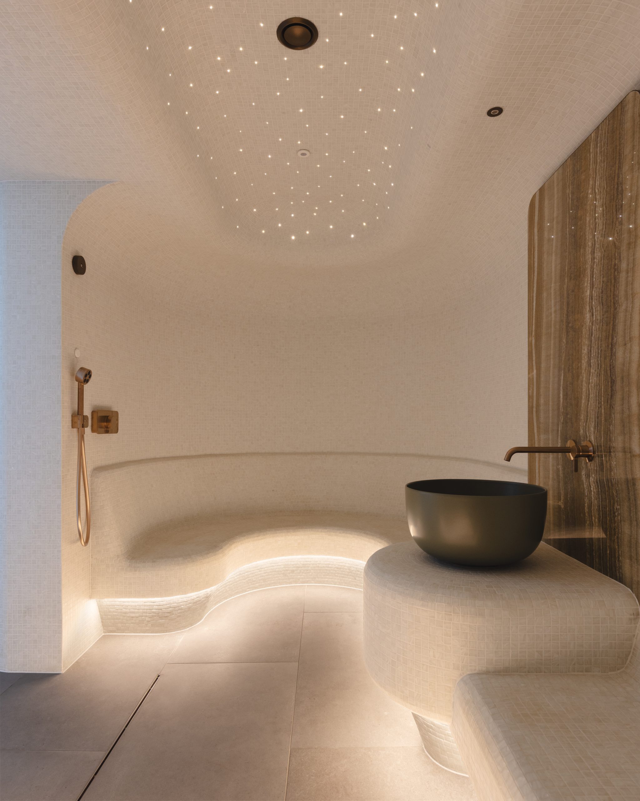 Un espace wellness maîtrisé, offrant une expérience de récupération complète, avec une technique fiable et une lecture architecturale sobre.
